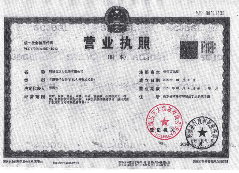 鄆城縣正大包裝有限公司座落于水滸文化發(fā)祥地——宋江故里鄆城,西臨京九鐵路,南臨日菏高速公路,地理位置優(yōu)越,交通便利。